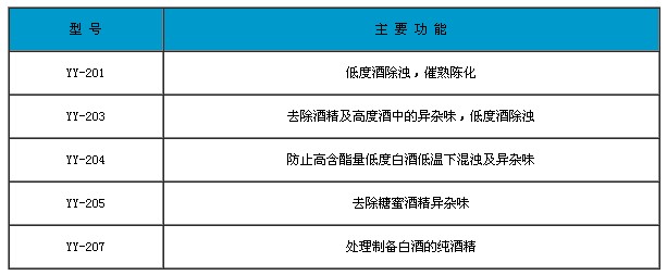 (低度白浊,果酒、啤酒去除果胶、蛋白质、酵母等),提高酒质,加速酒的陈化,去除酒中异味及苦味等都起到很好的效果。